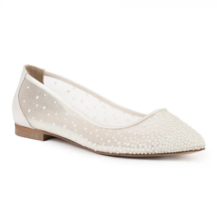 Balerinii lucrati cu perle aplicate manual asa fel incat sa se potriveasca cat mai bine in ziua nuntii cu rochia de mireasa.