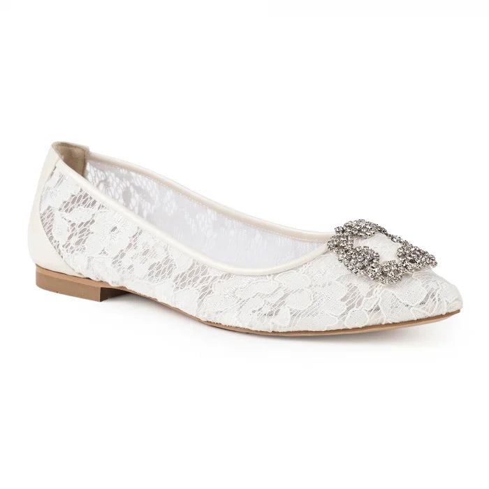 Balerinii lucrati din dantela cu strasuri aplicate asa fel incat sa se potriveasca cat mai bine in ziua nuntii cu rochia de mireasa.