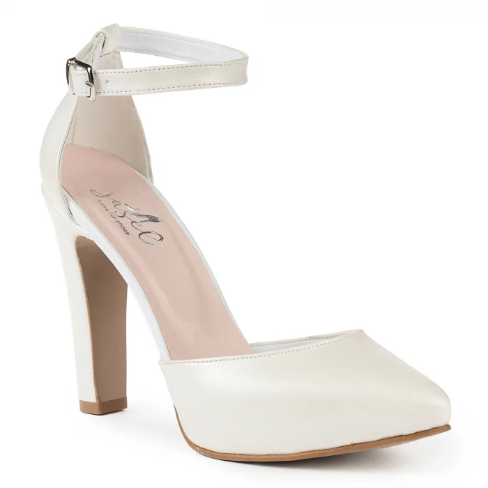 Pantofii sunt confectionati manual, au pernuta dubla in interior pentru a asigura mai mult confort si talpa antiderapanta cu o inaltime de 10 cm a tocului si platforma ascunsa de 1 cm, foarte comozi pentru ziua nuntii, iar la dorinta clientului se pot aplica si fundite !!