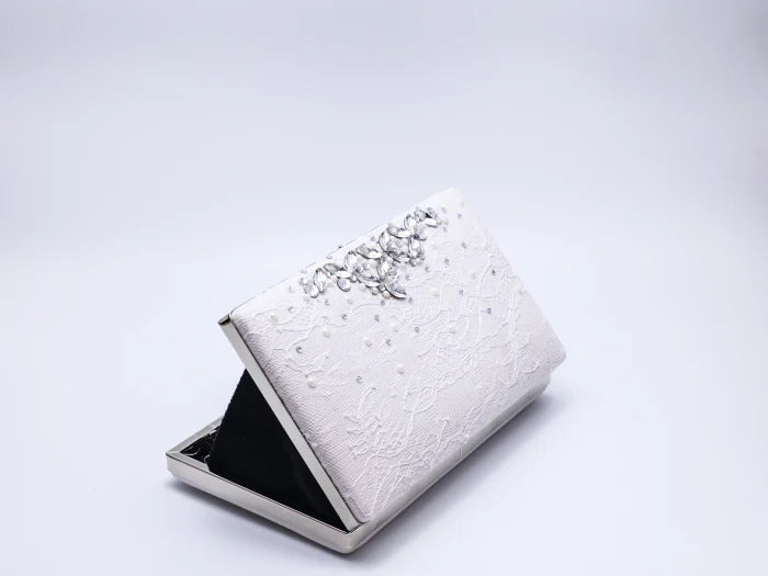 Cu un stil modern și foarte feminin , cu strasurişi dantela care iți ia ochi ideală pentru nunta şi ocazie speciale, se poate purta ca geantă plic sau ca o geantă crossbody . Este o alegere ideală pentru nuntă sau orice ocazie când avem o ținută elegantă. Interiorul este unul singular cu un buzunar . Cureaua de umăr nu este reglabilă.