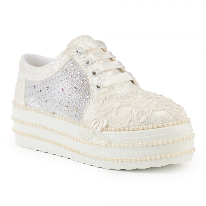Tenesii sunt cu talpa de 4,5 cm special facuti pentru ziua nuntii cat mai usori in timpul dansului si frumosi in acelas timp.